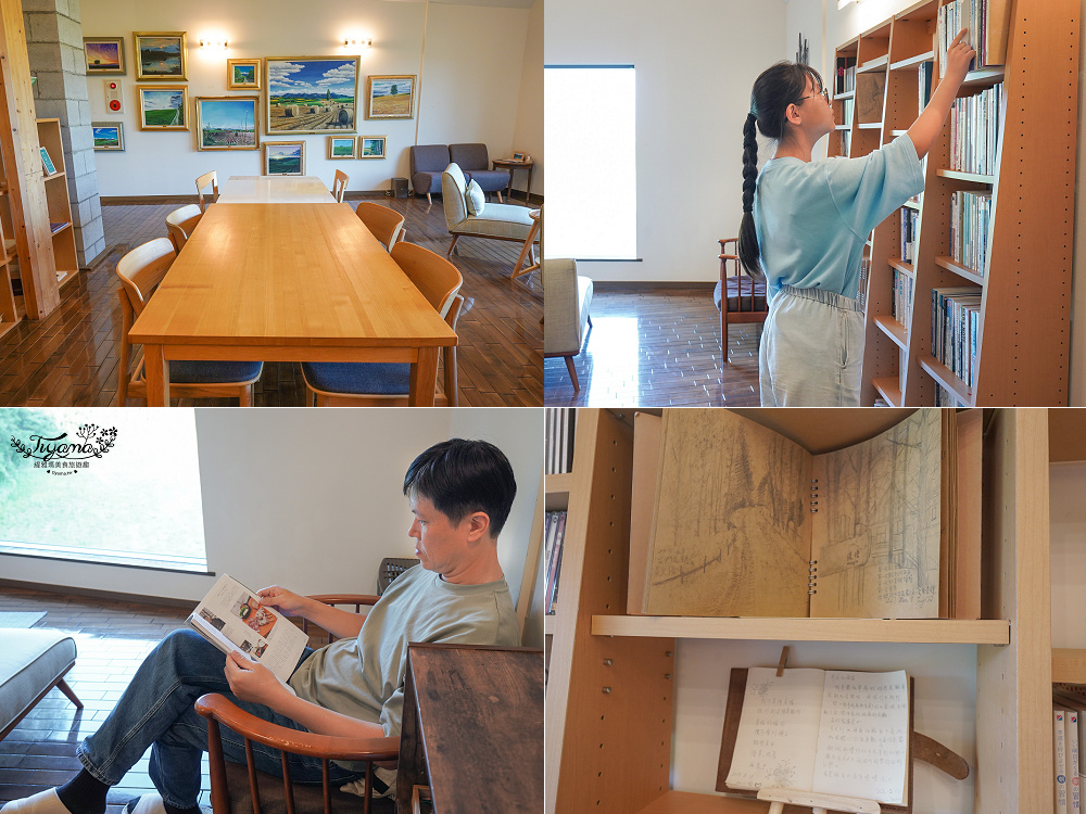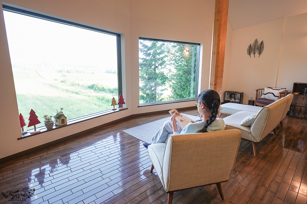 本館2樓有迷人的緩慢書房,是提供給住宿使用的休憩區,可坐著欣賞窗外美瑛景色或拿一本書靜心閱讀。