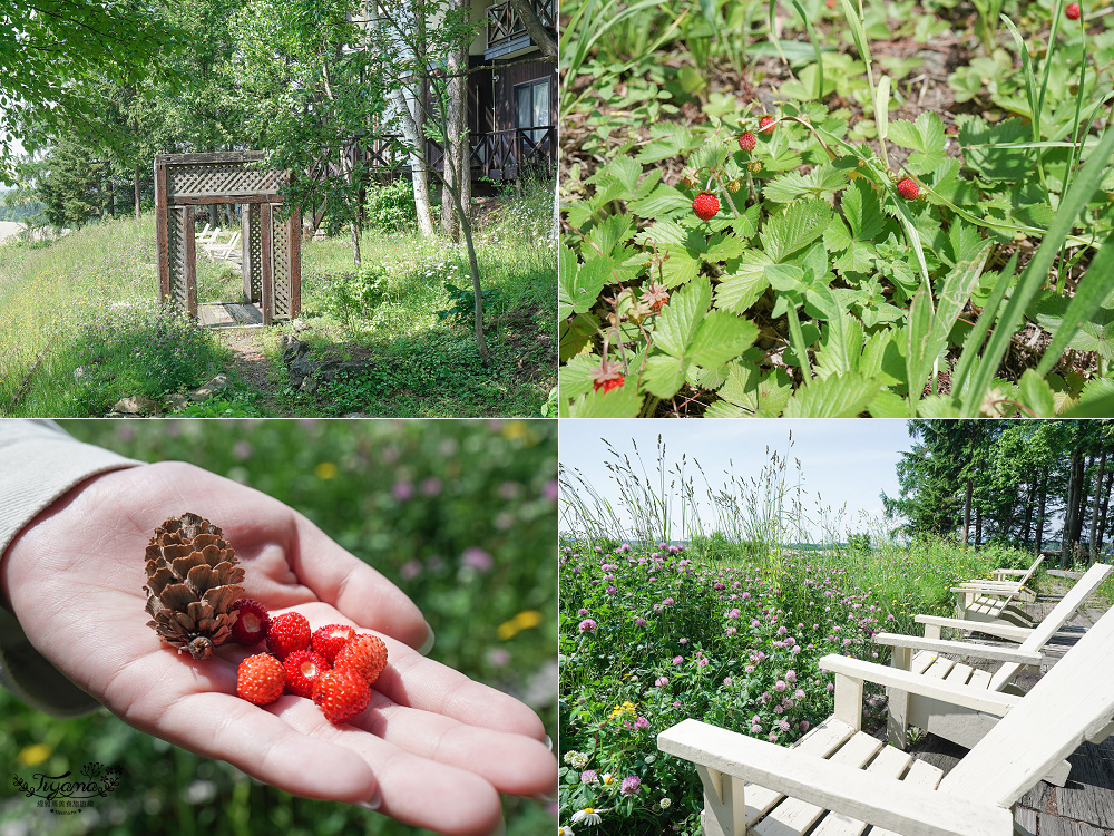 從本館走路不到1分鐘就能到Villa別墅區,本館後方有一個木亭小徑,我們忍不住走過去拍照,還發現滿地的野紅莓,緹緹頭一次看見野生紅莓,興奮不已。
