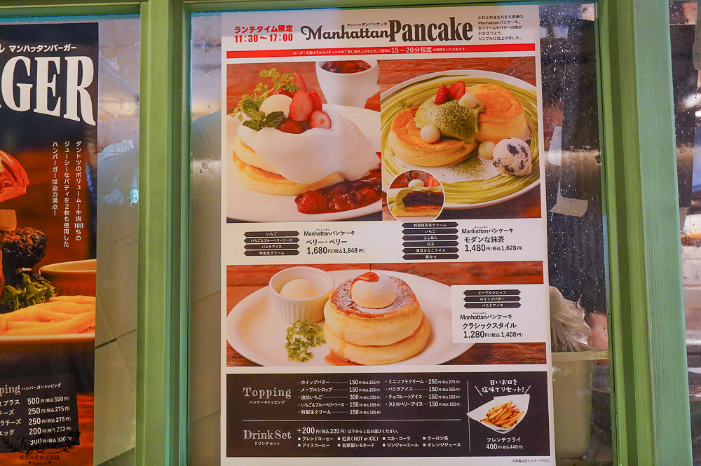 就是被餐廳外的Pancake圖片給吸引,餐廳的午餐菜色也不錯,其實當下也很猶豫是否要直接在這裡用午餐,最終還是太想吃燒肉到肉の割烹田村 Yakiniku Bar Tamura點午餐套餐再下來吃甜點。