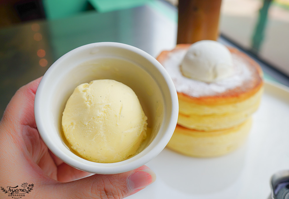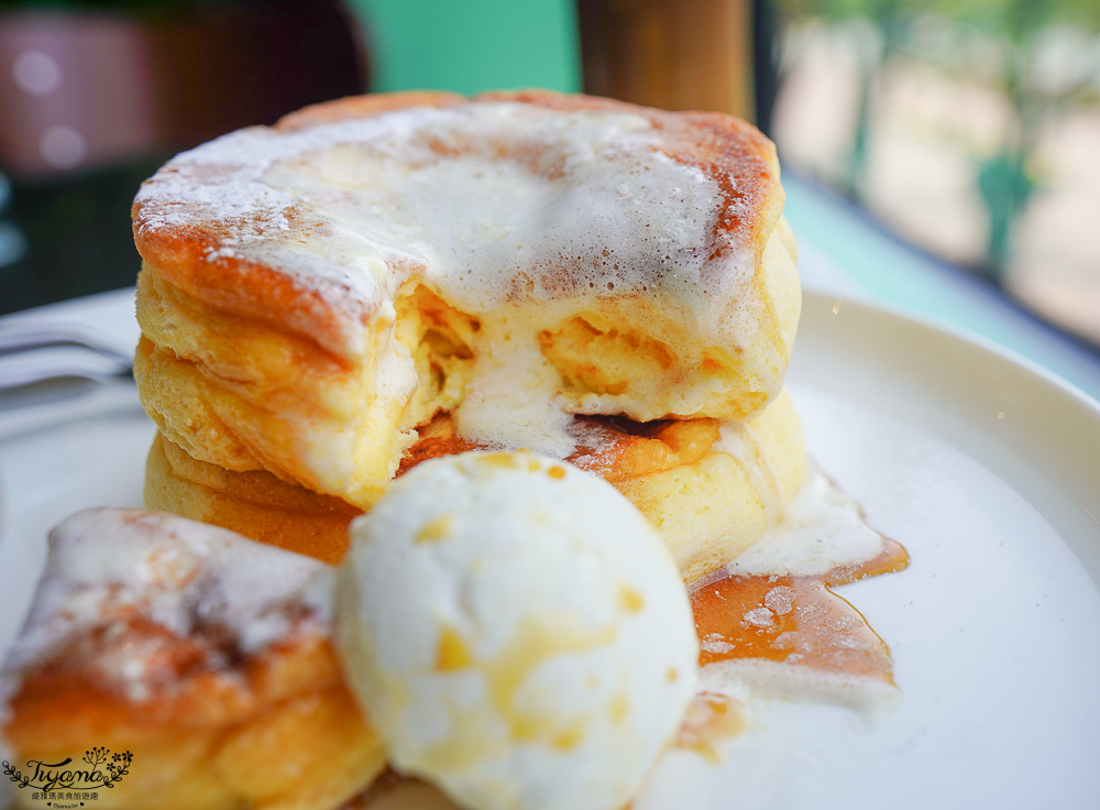 我心心念念的舒芙蕾鬆餅,終於來了!!附上一球能看見很多香草籽的香草冰淇淋