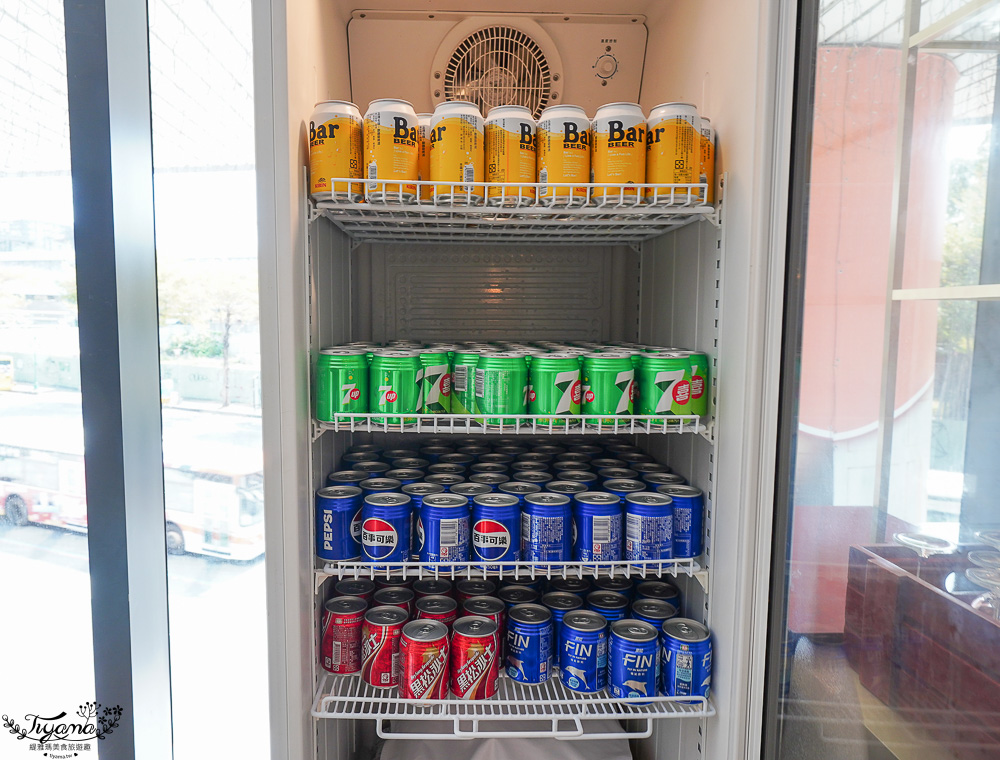 啤酒有自己倒的鮮釀啤酒,也有冰箱內的罐裝啤酒,下方軟性罐裝汽水飲料…等也放置在冰箱內。