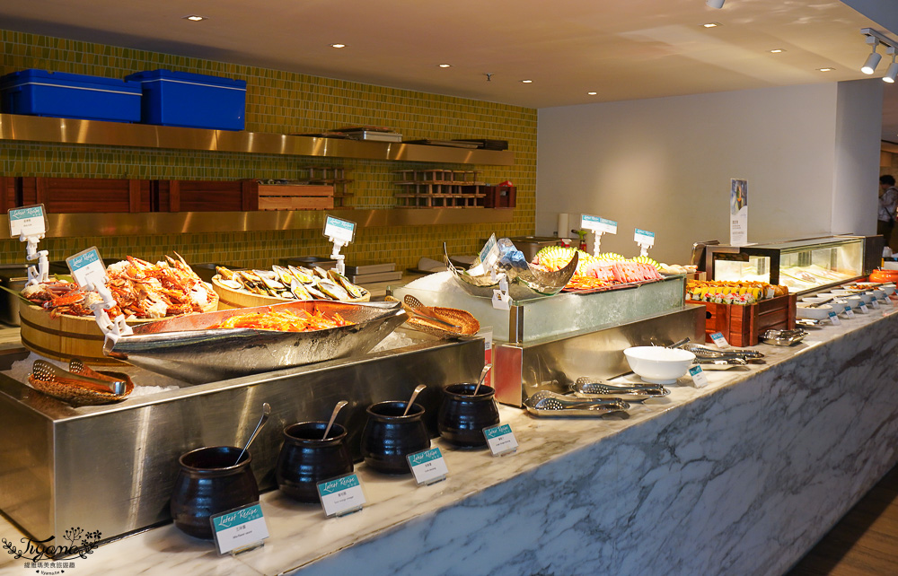 個人心得是爐烤牛排超嫩,綜合手捲、牛肉湯必吃,白蝦好大尾,生魚片也美味,熱鍋料理與蒸籠區也很推,重點是能紅白酒暢飲,以星級飯店的Buffet自助餐的菜色價格來說,完全不輸知名連鎖百匯吃到飽餐廳,看平日午餐還能這麼多人就知道,很推薦大家來品嚐。