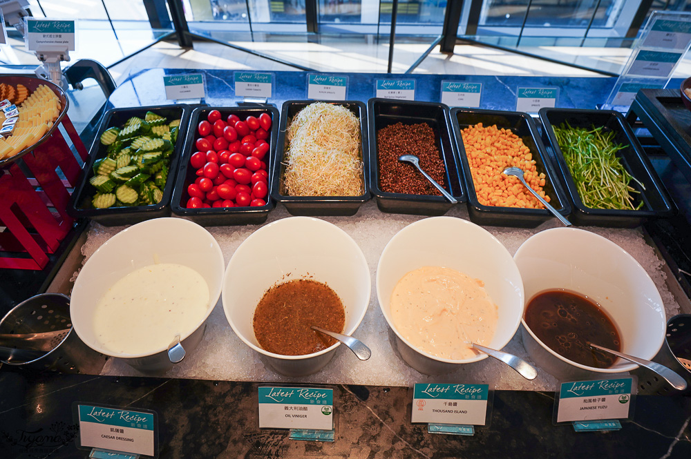 吃過不少自助餐,新食譜全日餐廳的用餐區座位讓我小小的驚艷,小圓桌與多人長桌給人很不一樣的清新風格。
