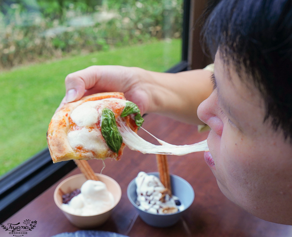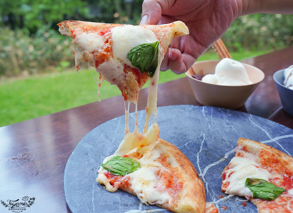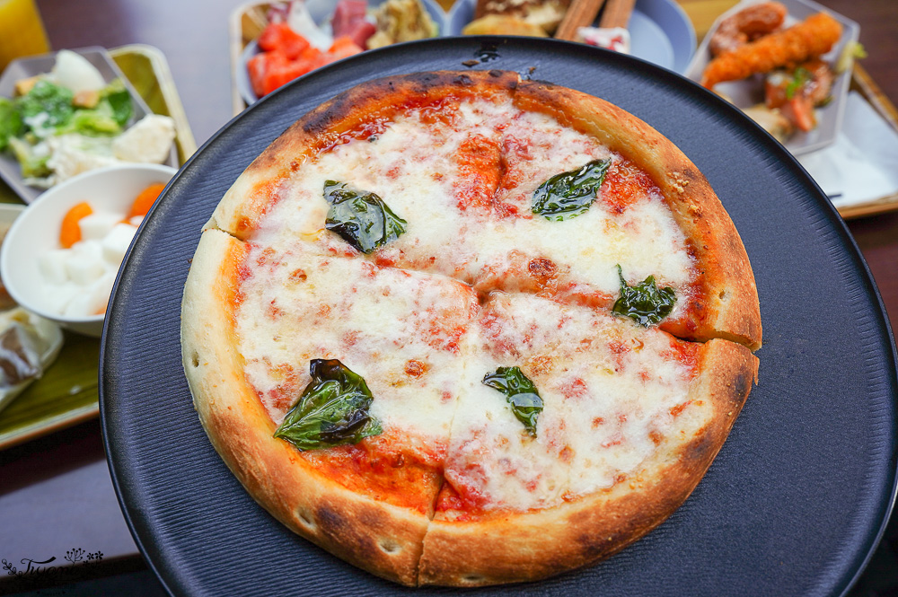 想好好品嚐星野農場起司,我們選瑪格麗特比薩,看這拉絲~有夠邪惡的,記得拿到就要現吃,熱呼呼時品嚐也是美味的關鍵之一。