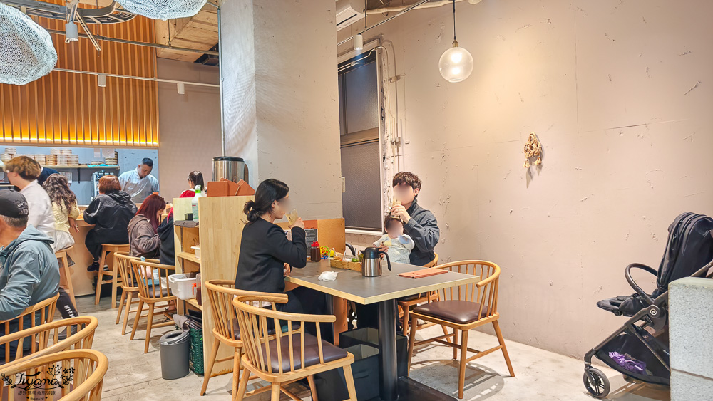 餐廳是清新熱鬧的現代食堂風格,很明亮~吊燈設計感十足,重點是工作人員每位都活力十足,看我一直拿手機拍照還熱情揮手。