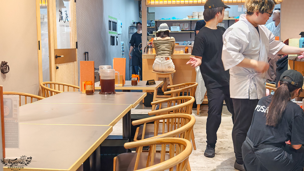 門口上的菜單可以先看看想吃什麼,進店就能快速點餐!!等待期間有時會詢問是否有1位的客人,如果是可以提前用餐,後來發現工作台前高腳座位會優先安排給1人用餐的食客。