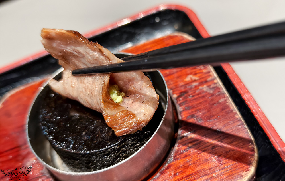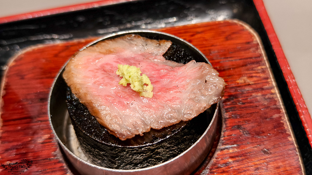 與赤身部份相較之下,上和牛肉的油花明顯豐富很多,口感自然軟嫩多汁,吃起來非常享受,也是我們全部吃完總結最推薦點的。