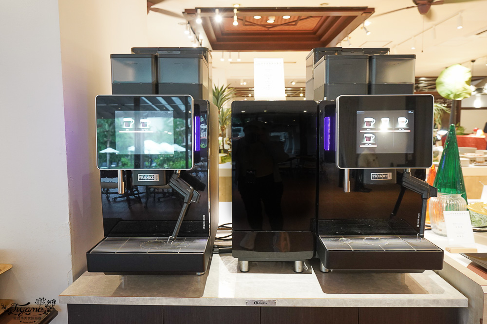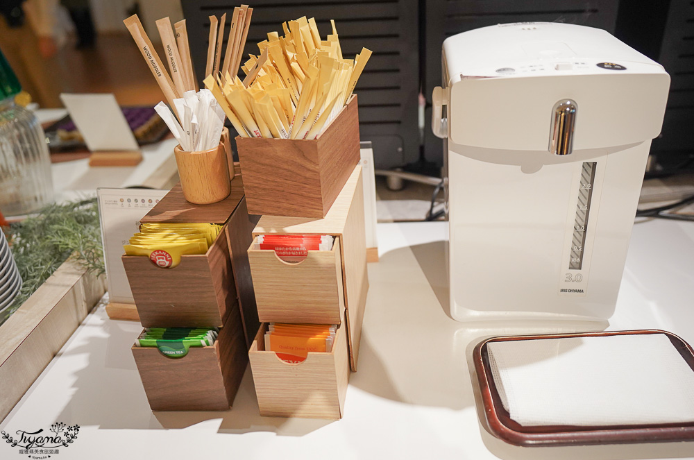 飲品有咖啡,各種茶包可自助沖泡,也有果汁茶飲。