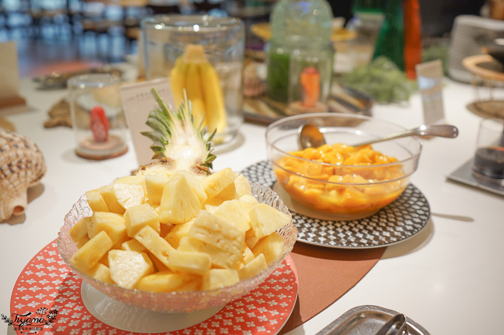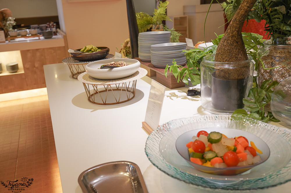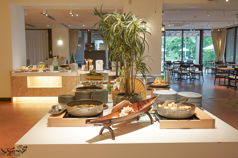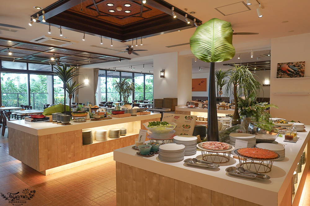 餐廳有四個自助餐台與一個延伸飲料吧的廚師現場服務料理餐台,餐台區規劃設計與動線極佳,以西表島周圍的叢林風格作為點綴,營造出高雅簡約的氣氛。