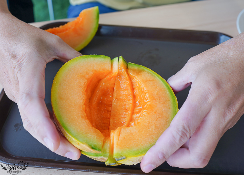 之前看別人分享總覺得5片才是半顆,實際現場拼湊…真是4片就半顆夕張哈蜜瓜。