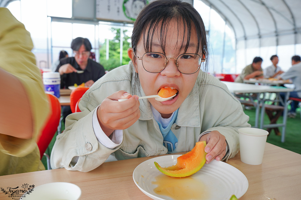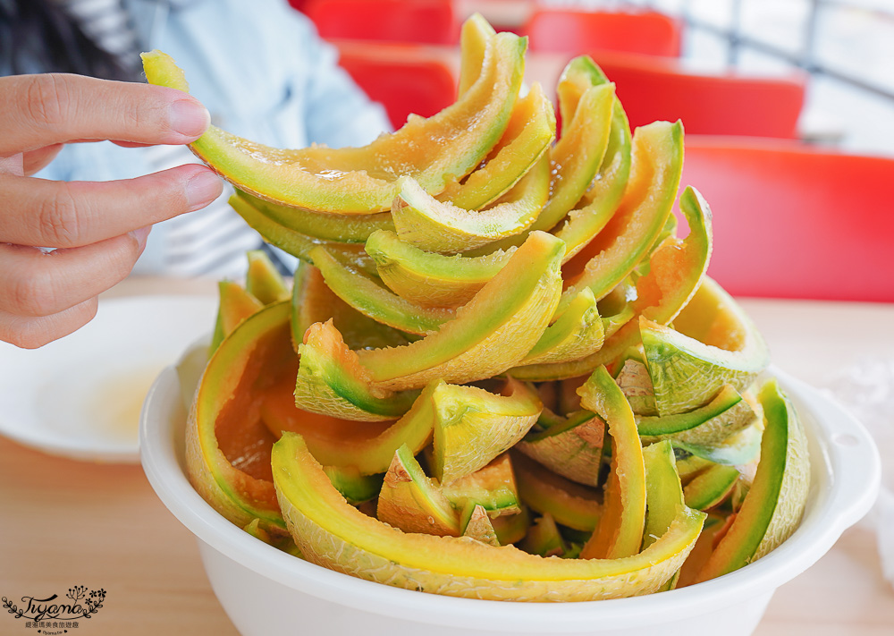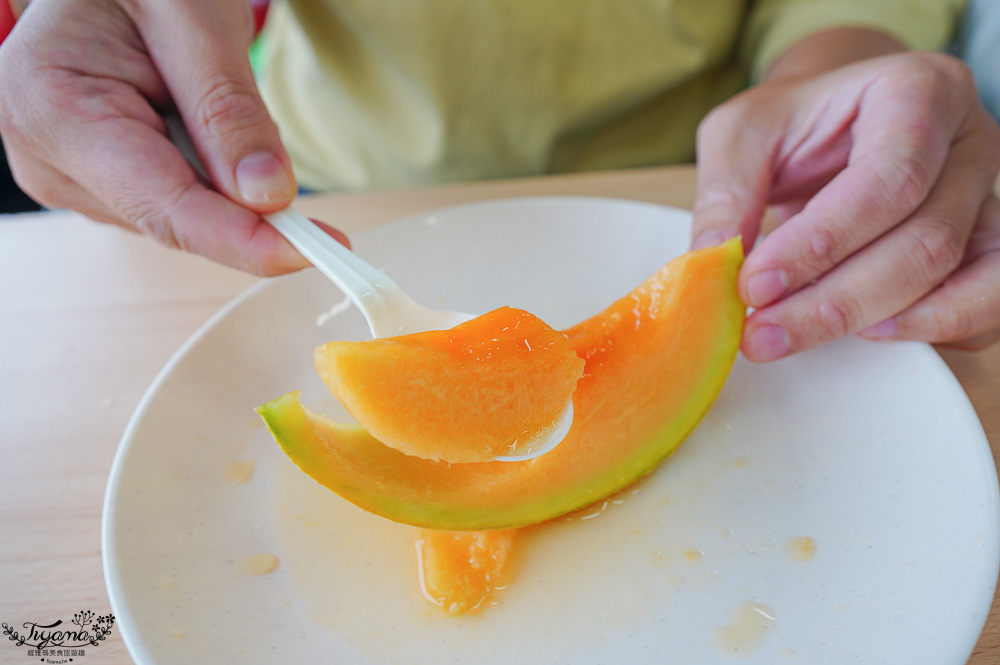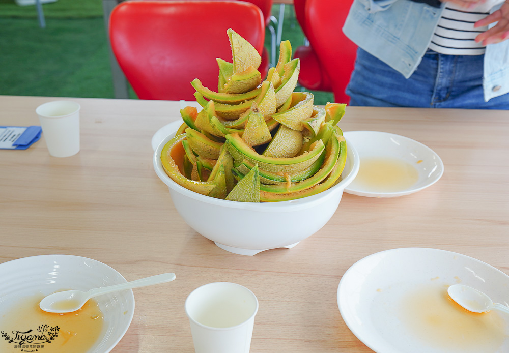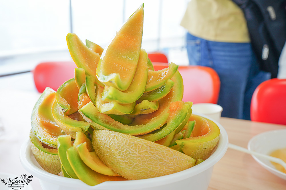 沒有參加哈蜜瓜吃到飽也能買切片好的單片計價的哈蜜瓜,現場還有霜淇淋、哈蜜瓜霜淇淋、數量限定的半顆新鮮哈蜜瓜+牛奶霜淇淋冰品。