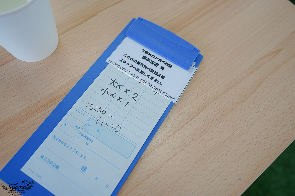 現場有飲用水,桌上有擦手巾,把食券交給工作人員,立刻寫上30用餐時間是從幾點到幾點。