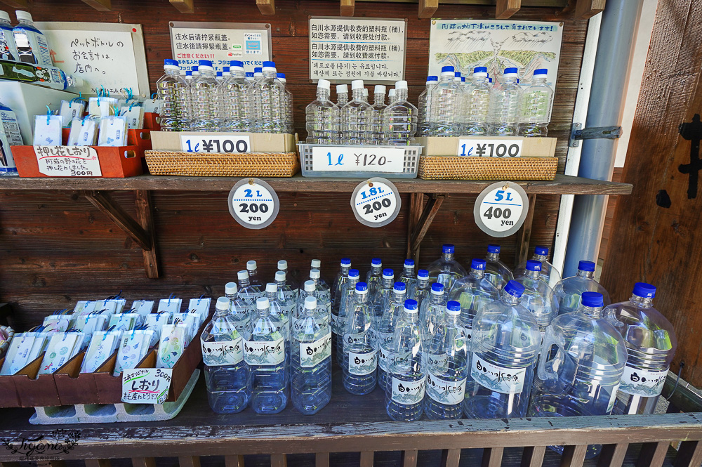 店外販售乾淨空瓶,可盛裝白川水源的天然湧泉水,與售票口不同的是,這裡有大瓶5公升。