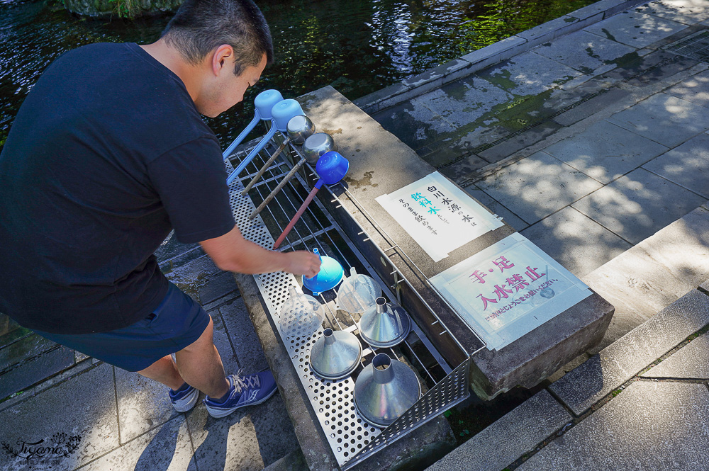 我們裝一下瓶水,晚上回飯店煮沸沖咖啡,也算是有真的喝到白川水源的天然水。