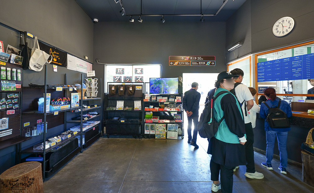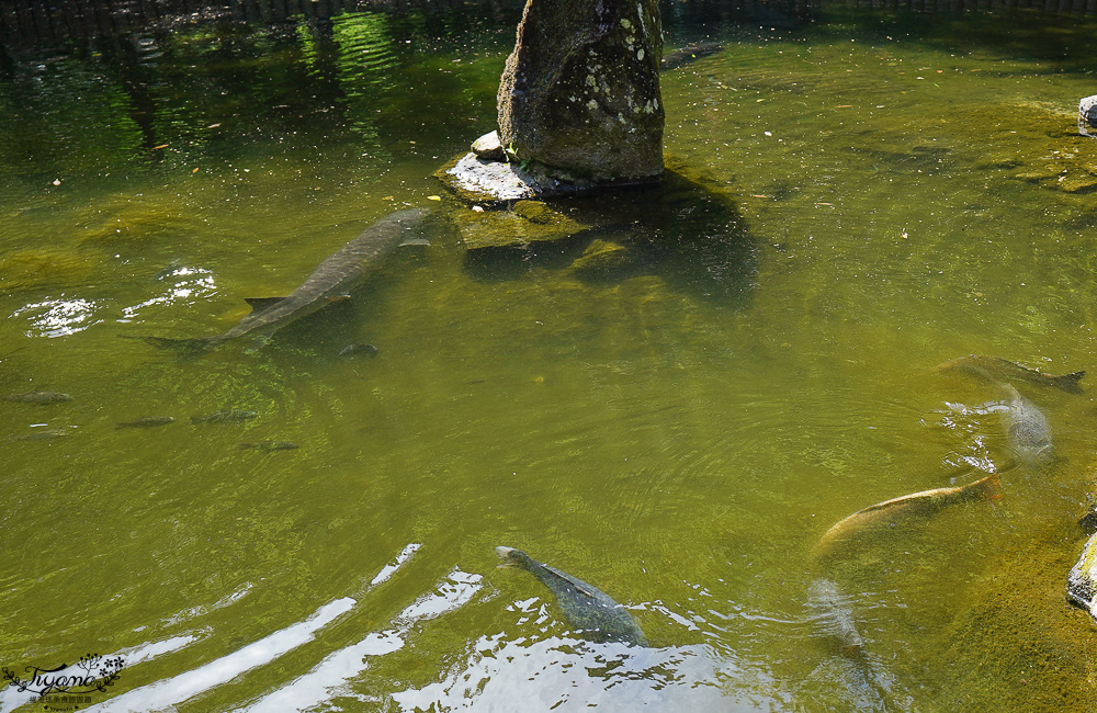 到步道入口處上方是飼養高千穗峽才有的活火石「蝶鮫」,遊客可買100日元魚飼料餵魚。