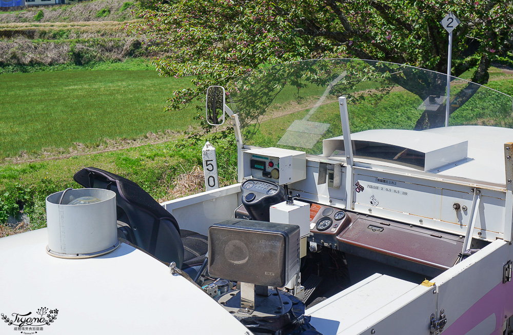 最後停下來有日文的擴音解說,這條鐵道路線在2005年9月6日的第14號颱風襲擊重傷而關閉,最終由高千穗天照大神鐵道部份修建成為今日的觀光鐵道高千穗小火車。