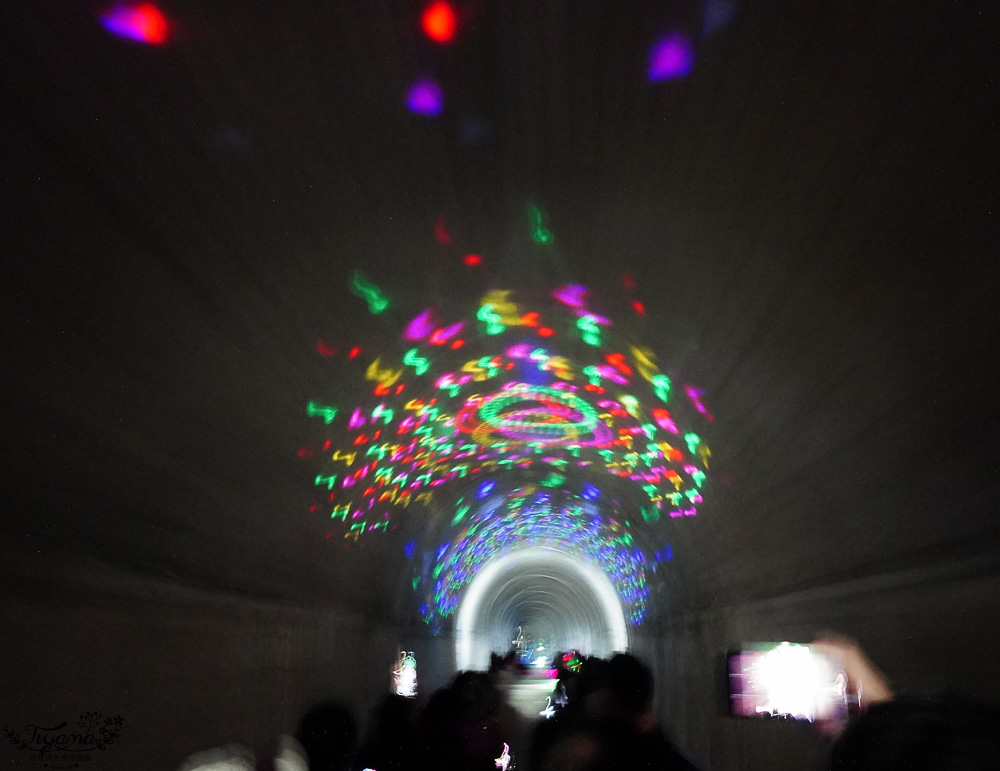 隨即能見到投射出的霓虹燈效,引來遊客們一陣欣喜聲。