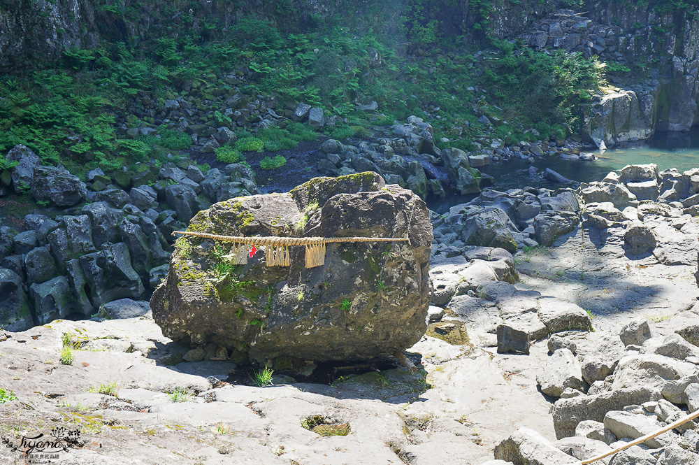 神話舞台之一的「鬼八的力石」,據說有200噸重,這段傳說故事導遊在車上已先講解給我們聽。