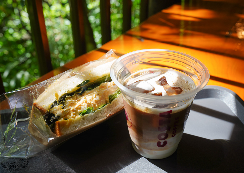 我還點了一個雞蛋三明治,享受這片刻的渡假氛圍,結束最後一個景點,時間一到就有專用小巴帶我們回福岡,中間停留一個休息站就直接回到博多車站。