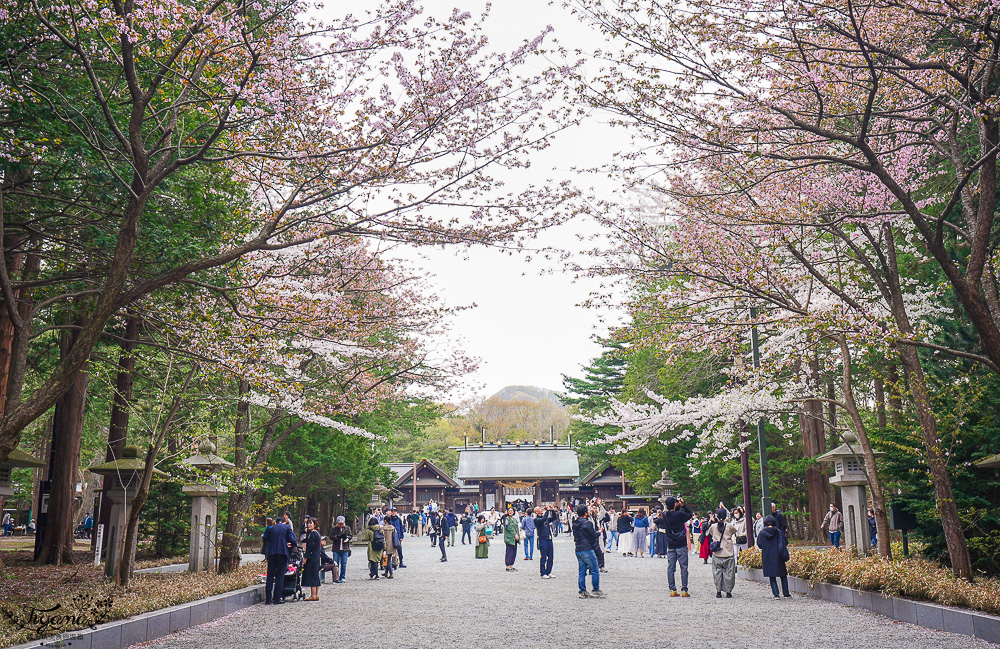 接著就前往北海道神宮,從這裡走到神宮正殿延路可賞櫻花、梅花,加上有祭典攤位市集至少可遊玩1小時以上。