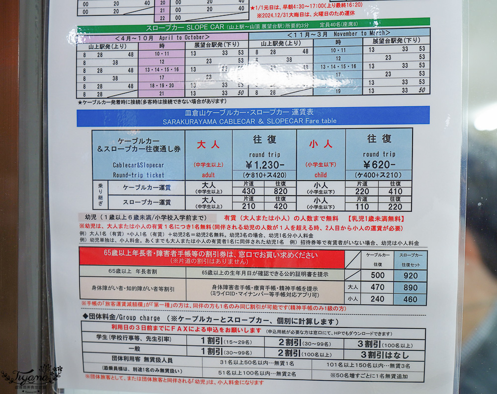 售票大廳有許多站內資訊,我們需要購買2段車票(登山纜車+斜坡車)。