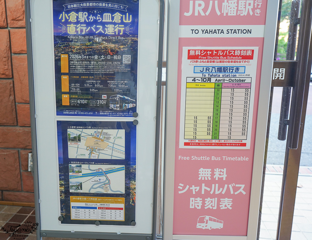 從皿倉山纜車山麓駅出發的乘車處在正門口前的餐廳ふもと食堂旁 Google地圖 ,本想接得上時間就坐免費接駁車到JR八幡站,再坐回小倉車站。
