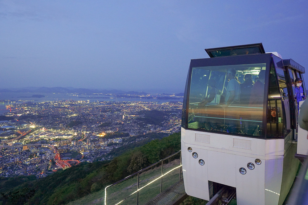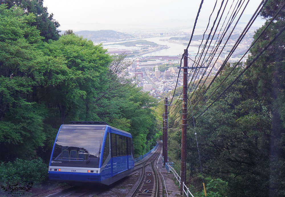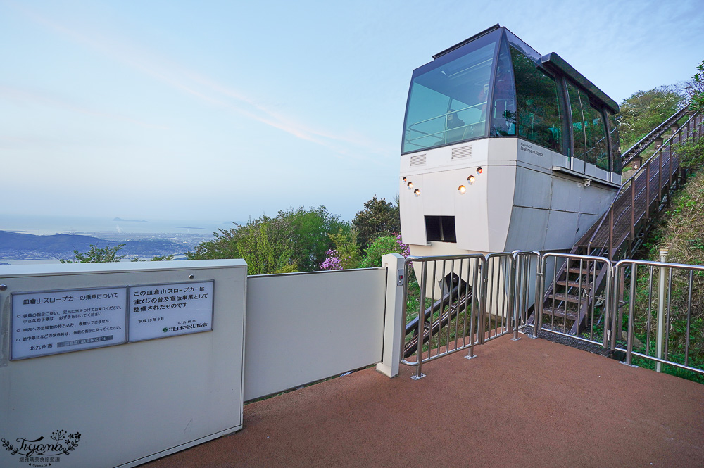 皿倉山纜車的登山纜車是九州最長的纜車,可乘載112位,山坡斜度28度,車程約6分鐘。