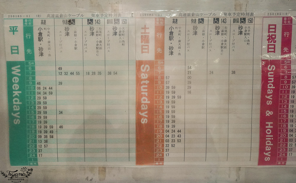 備註:有返於JR八幡站與皿倉山纜車山麓駅之間的免費接駁車 時刻表
