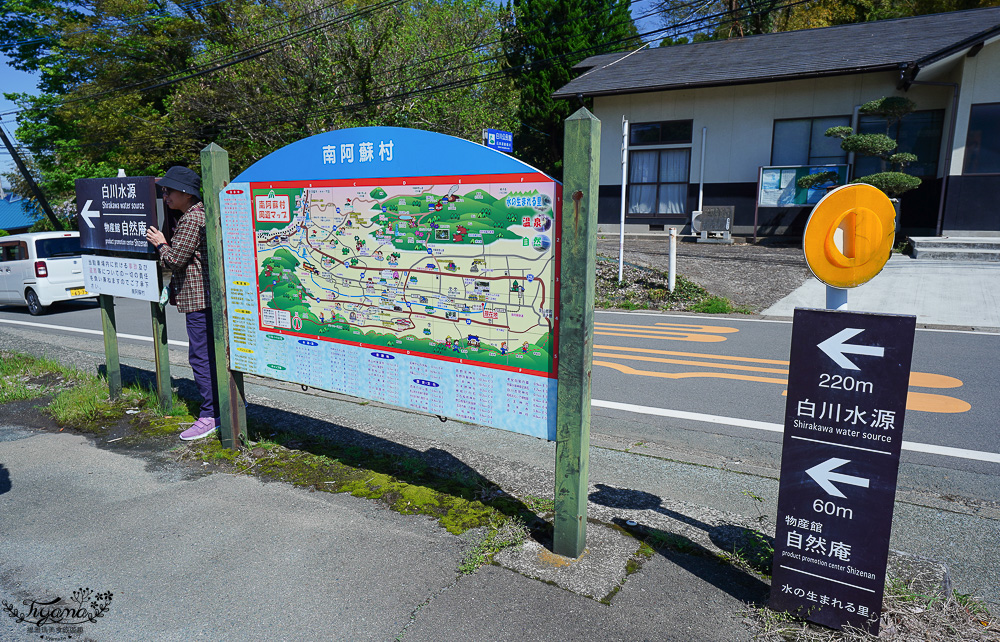 跟著巴士一遊的我們不需要擔心交通問題,而大眾交通可搭乘南阿蘇鐵道「南阿蘇白川水源」站,再步3分鐘就能到達我們下車的停車場,也是白川水源的入口。