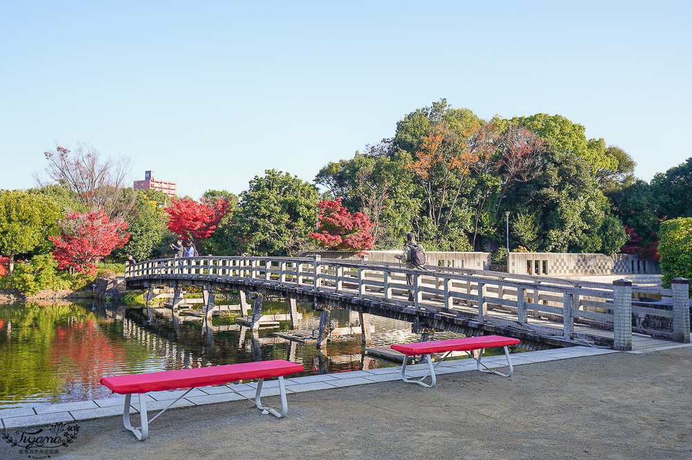 走進庭園即被くすのき橋前的幾棵紅楓給吸引,心想~太幸運了!!來得正是時候~