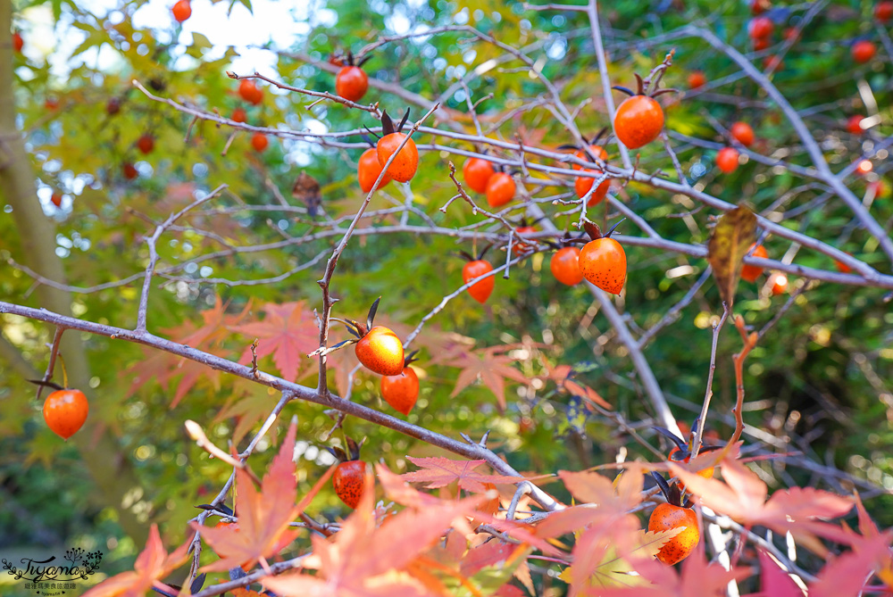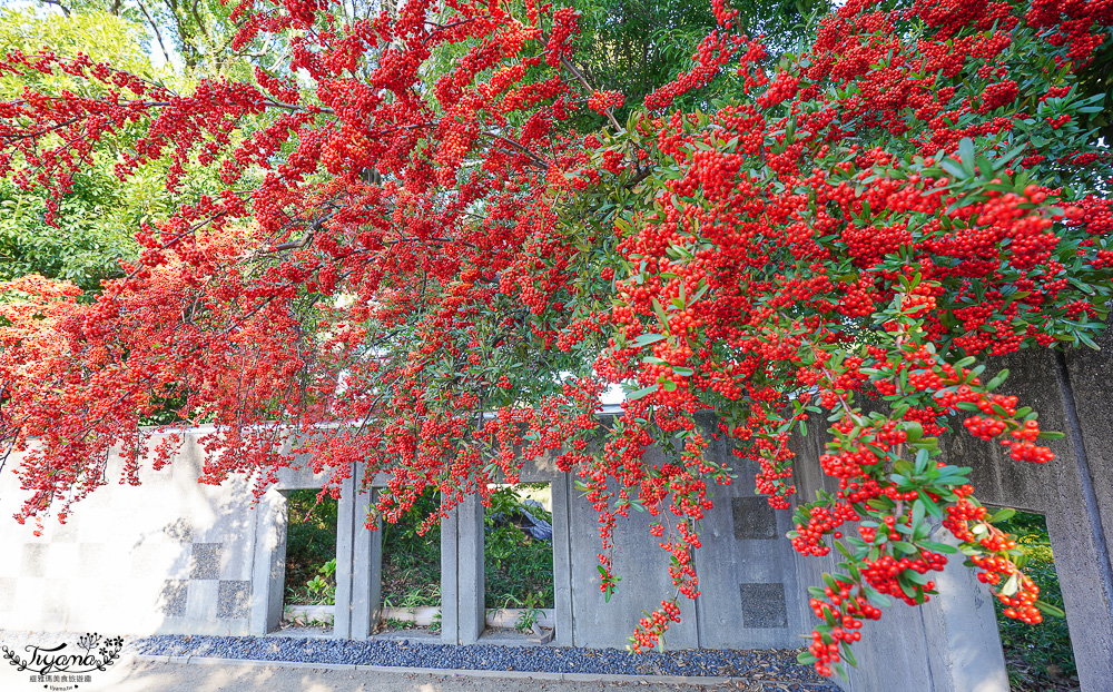 結滿紅色小果實的狀元紅在一角也是亮眼的焦點之一。