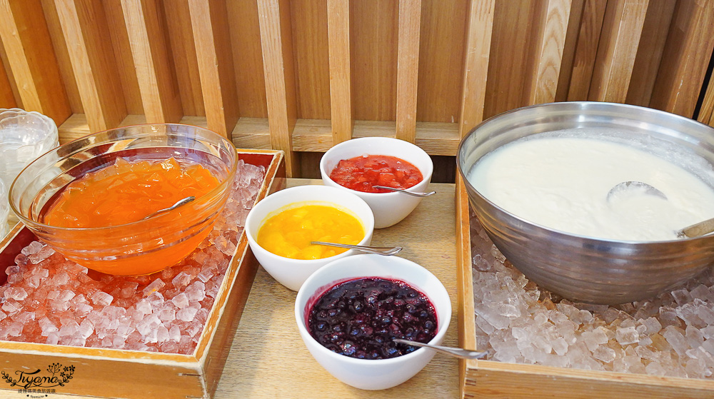 甜點有2種口味的生乳捲,優格有藍莓、草莓、芒果果肉果醬,哈蜜瓜果凍也好吃