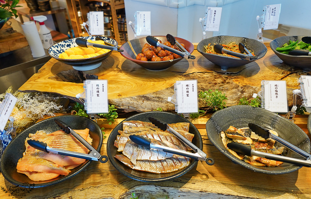 自助餐台分布在好幾處,以日式料理為主,多道日式炸物、魚料理、涼拌菜、溫泉蛋、手工豆腐、味噌湯、納豆,想品味純正日式早餐很推薦來天空 SORA 。