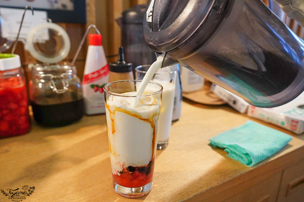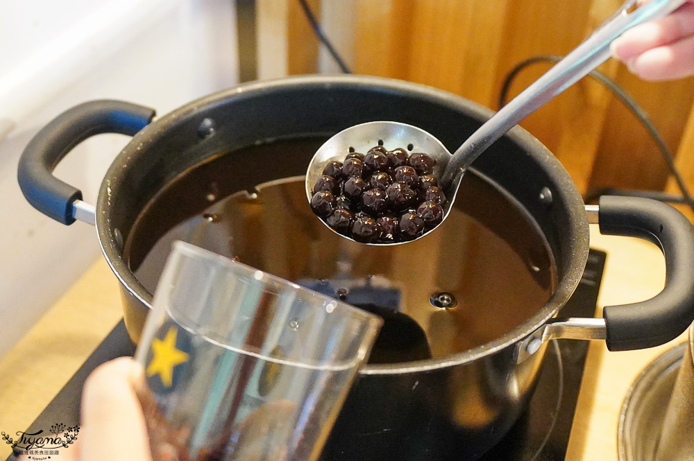 飲品自助調味區,居然有珍珠黑糖奶,食材有:草莓醬、抹茶醬、黑糖,珍珠、鮮奶,可調製自己喜歡的口味、甜度。