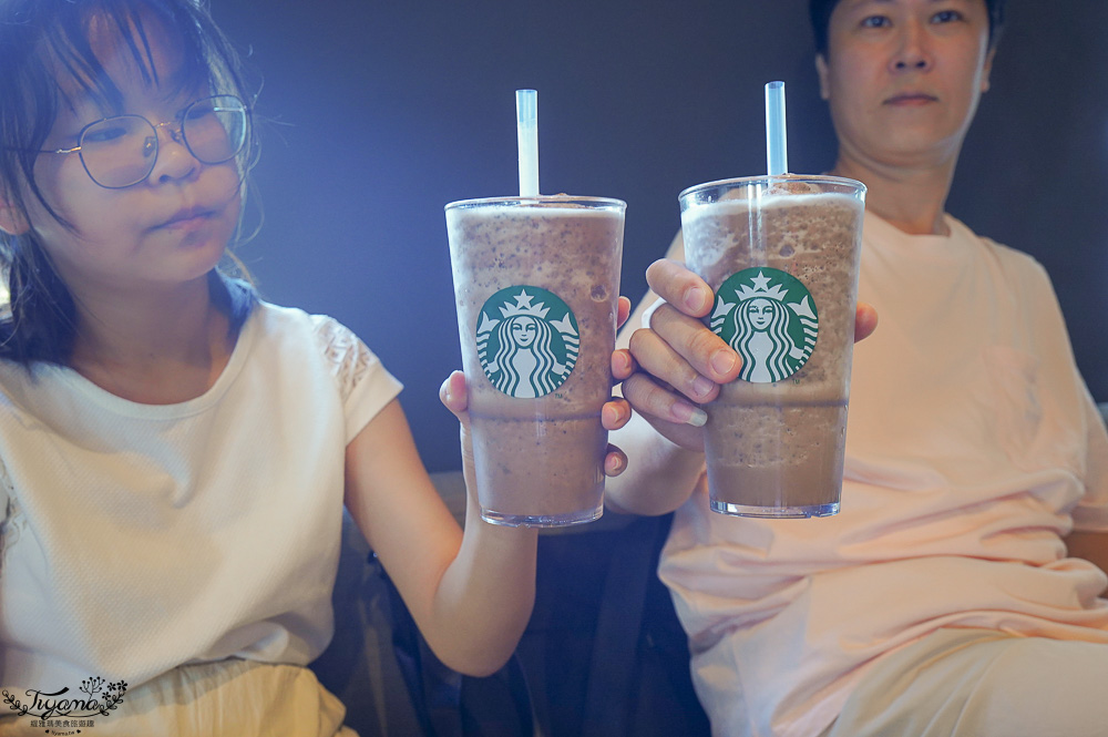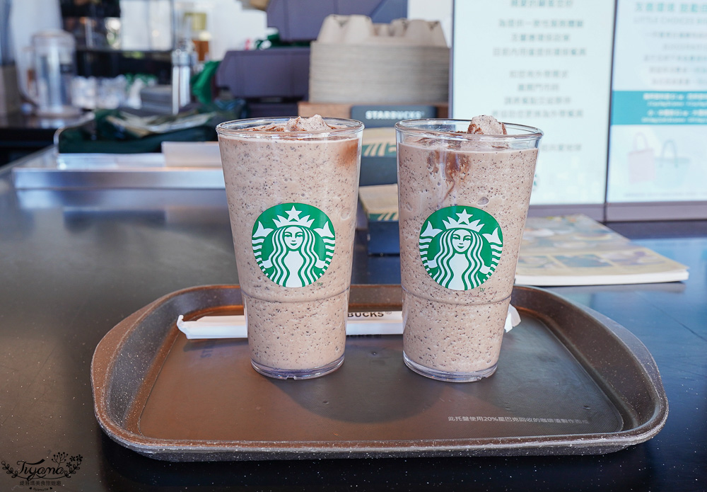 很快拿到我們的巧克力可可碎片星冰樂。