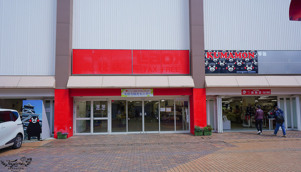 此次是參加郵輪報名的岸上觀光熊本一日遊巴士行程,第3站是水前寺成趣園,從側邊停車場出來有好幾間美食店與紀念品店,以及上次逛過的免稅店,跟上次來有點不同。