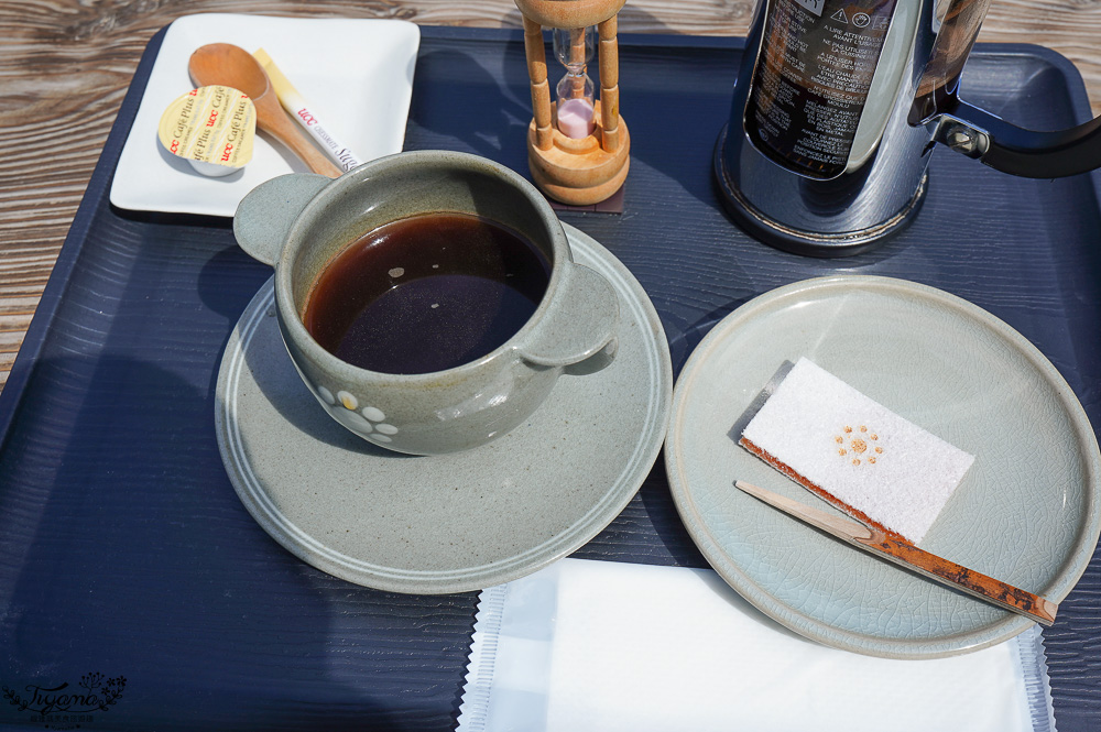 戶外區抹茶套餐600日元,坐室內的座敷席享用抹茶套餐700日元,想再吃和菓子加點是1個150日元,不想喝茶也有咖啡套餐800日元。