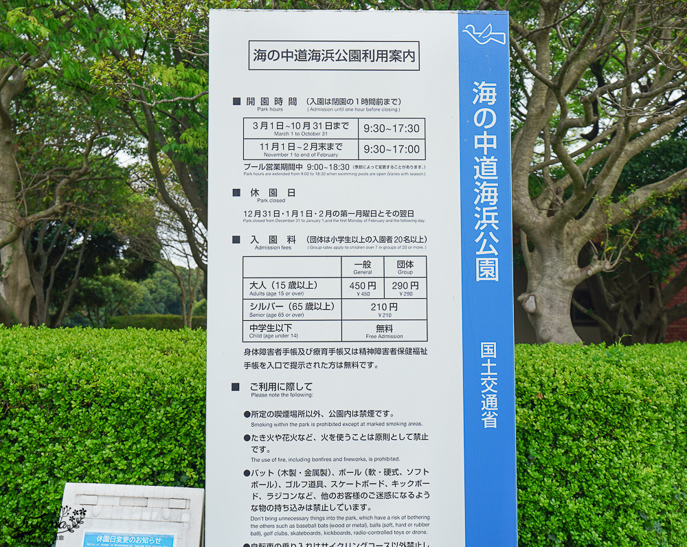 海之中道海濱公園的門票很友善親子家庭,15歲以上才需要買票進入(450日元),中小學通通免費入場,65歲以上也只要210日元,有自動售票機可使用電子支付,台灣最常用的paypay也可使用。