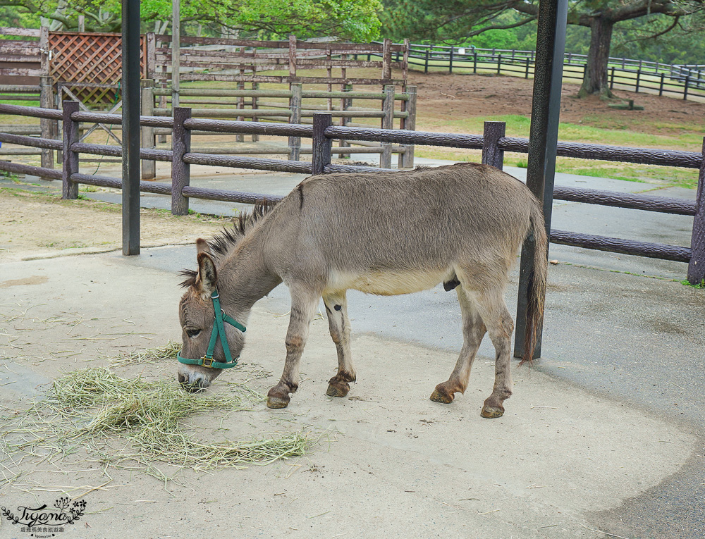 可愛的迷你馬、駝馬,在雨中感覺很放鬆慵懶的吃著牧草。